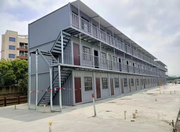 Modular container barracks with durable steel construction, designed for military, emergency, and temporary housing applications